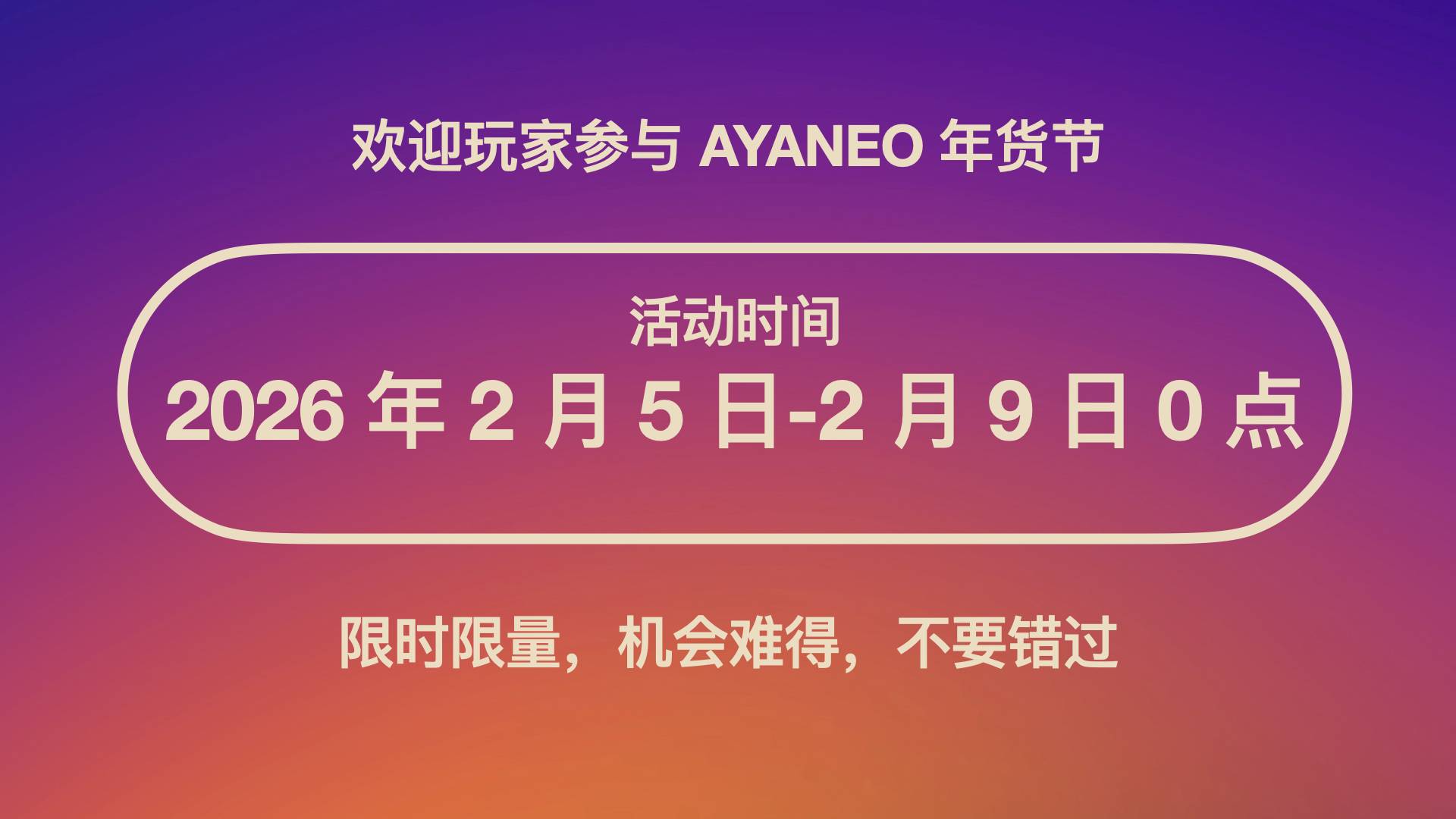 值得关注的是,本次 AYANEO 年货节期间,AYANEO CEO 尾巴大叔将亲自现身直播间,与玩家面对面互动,为玩家现场砍价、送福利、发年货,用最直接的方式回馈玩家长期以来的支持与厚爱。福利不止于价格,更是一份来自 AYANEO 的新春心意。本次年货节活动时间为 2 月 5 日至 2 月 9 日 0 点整,玩家朋友们不要错过。
