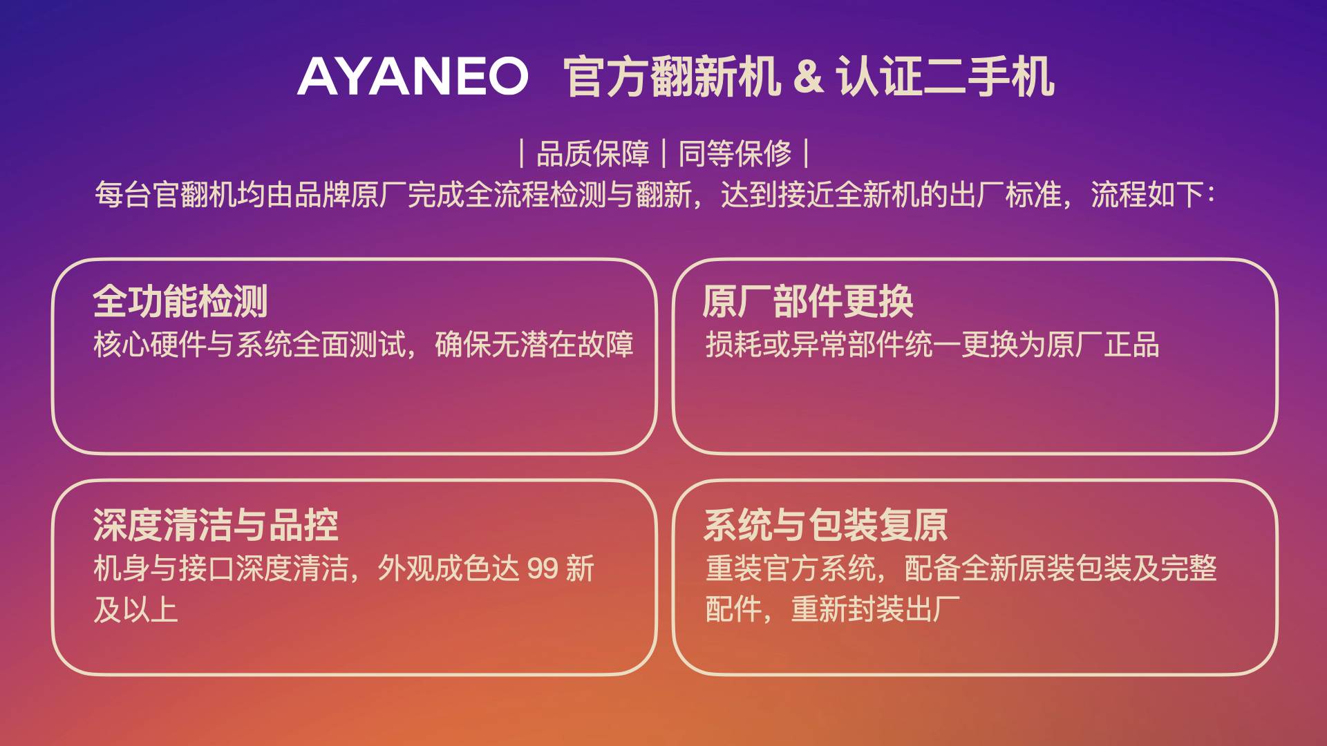 还有更大的惊喜等着玩家,AYANEO 官方翻新机与认证二手机也在年货节期间迎来重磅直降。