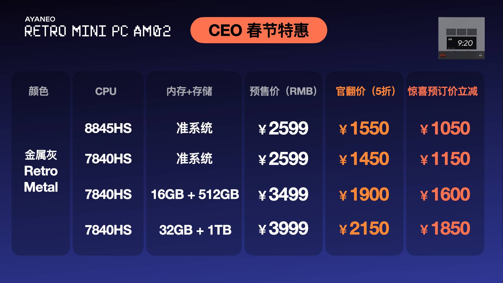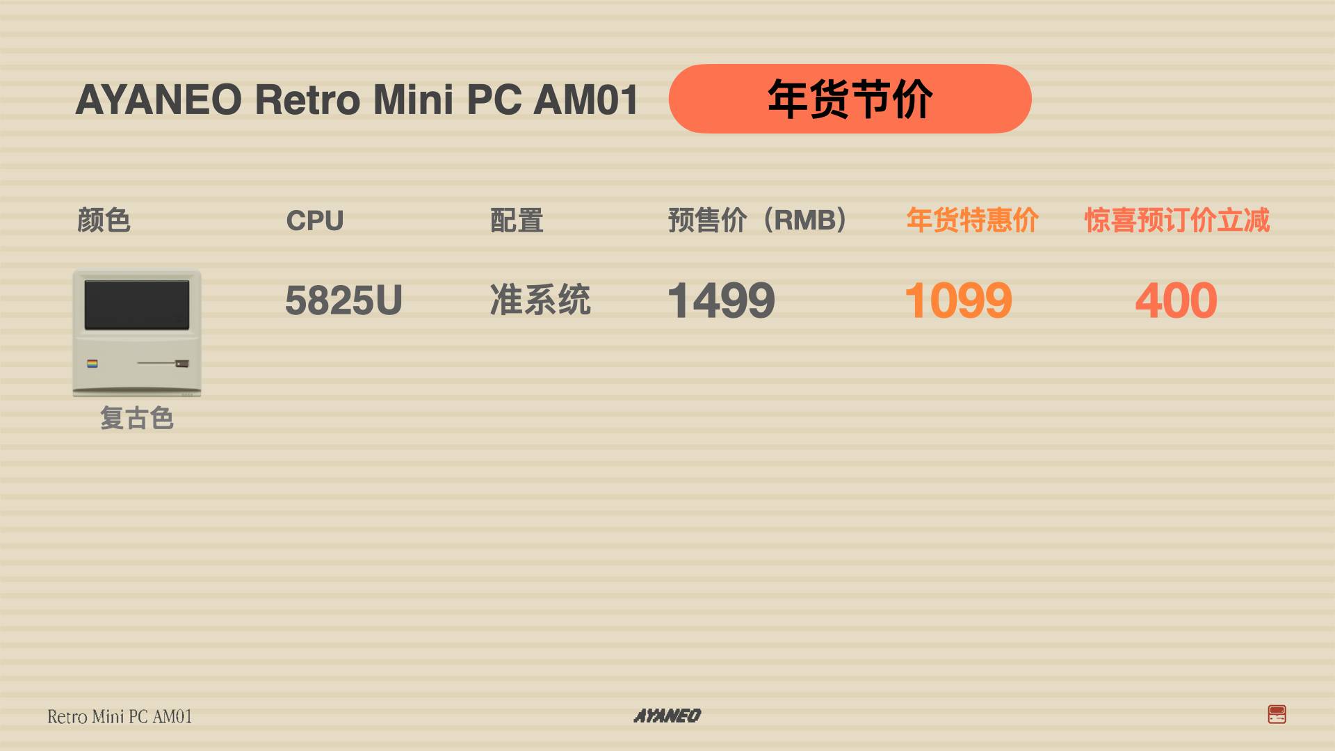 AYANEO 充满复古美学与创新设计的 Retro Mini PC AM01,以及极具科幻色彩的 AYANEO AG01 星舰显卡坞也同步参与活动,为追求桌面性能扩展的玩家带来更多可能。