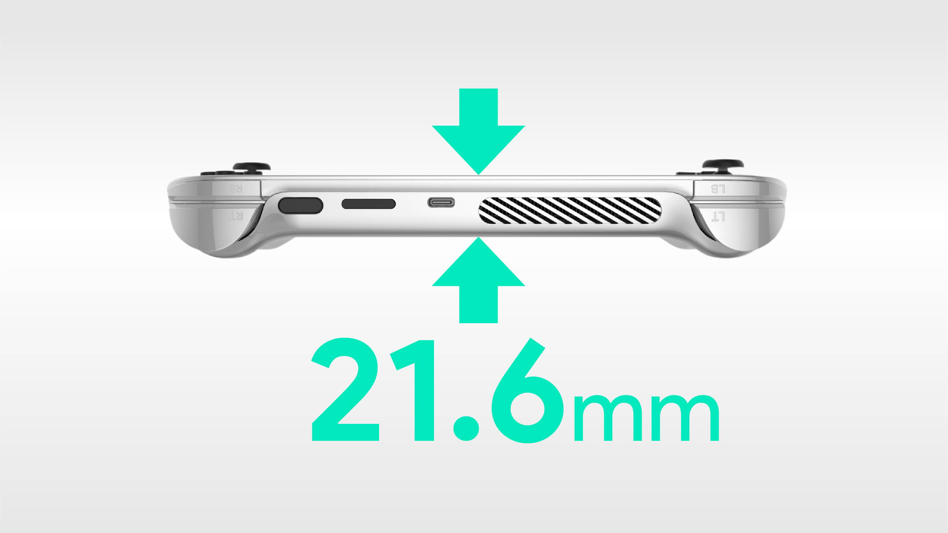 AYANEO AIR Pro 厚度仅为 21.6mm,在以轻薄著称的 AYANEO AIR 基础上,仅仅增加了3.6mm,