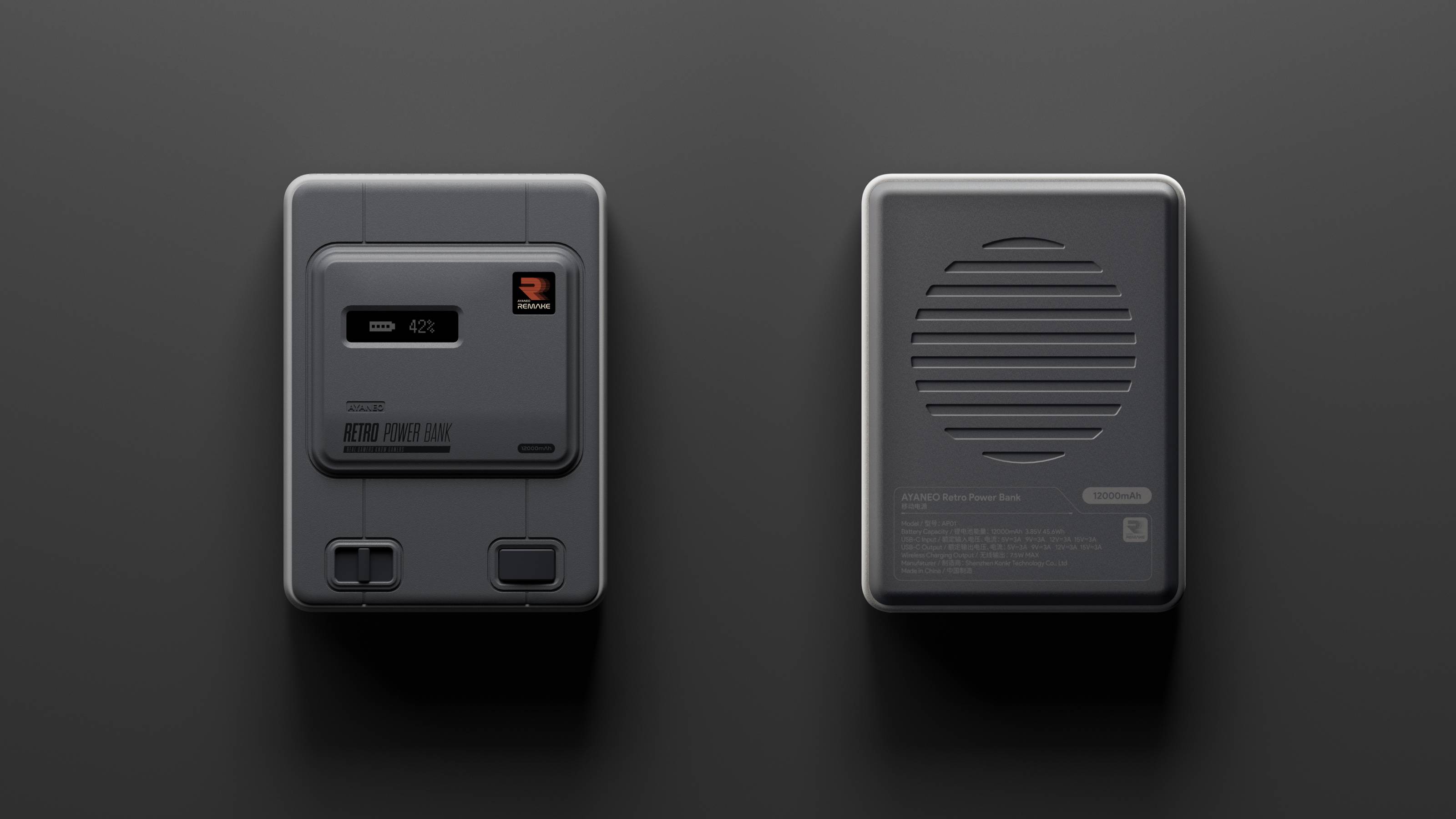 AYANEO REMAKE 概念不仅涵盖掌机和 Mini PC 这两个品类,我们还希望能为玩家提供全品类的复古文化体验。因此,我们将推出复古主题的通用配件,首款由我们自己打造的移动电源——AYANEO Retro Power Bank。