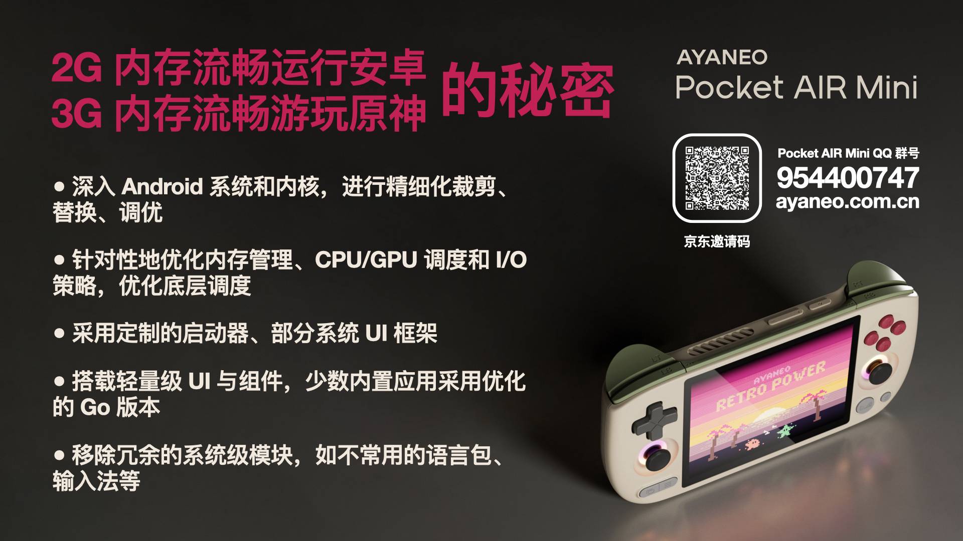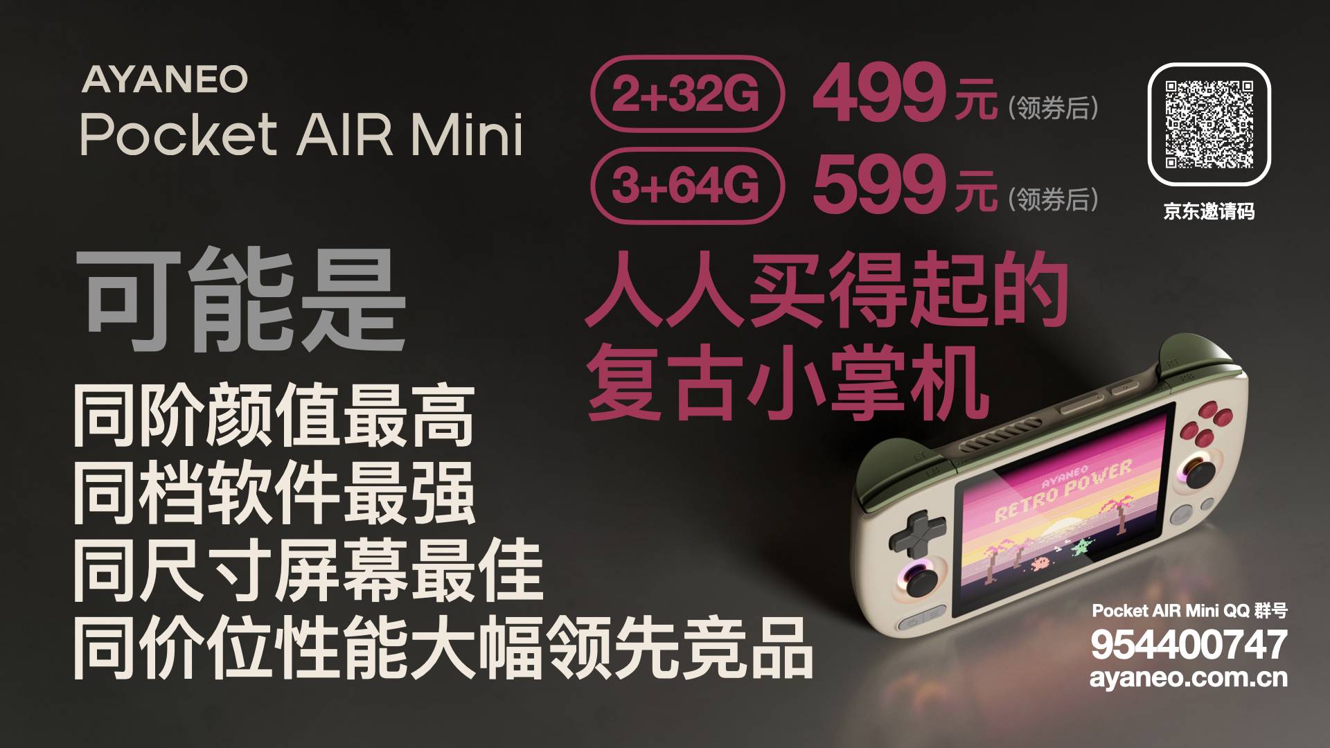 加入官方社群获取更多资讯 Pocket AIR Mini QQ 群:954400747 https://ayaneo.com.cn