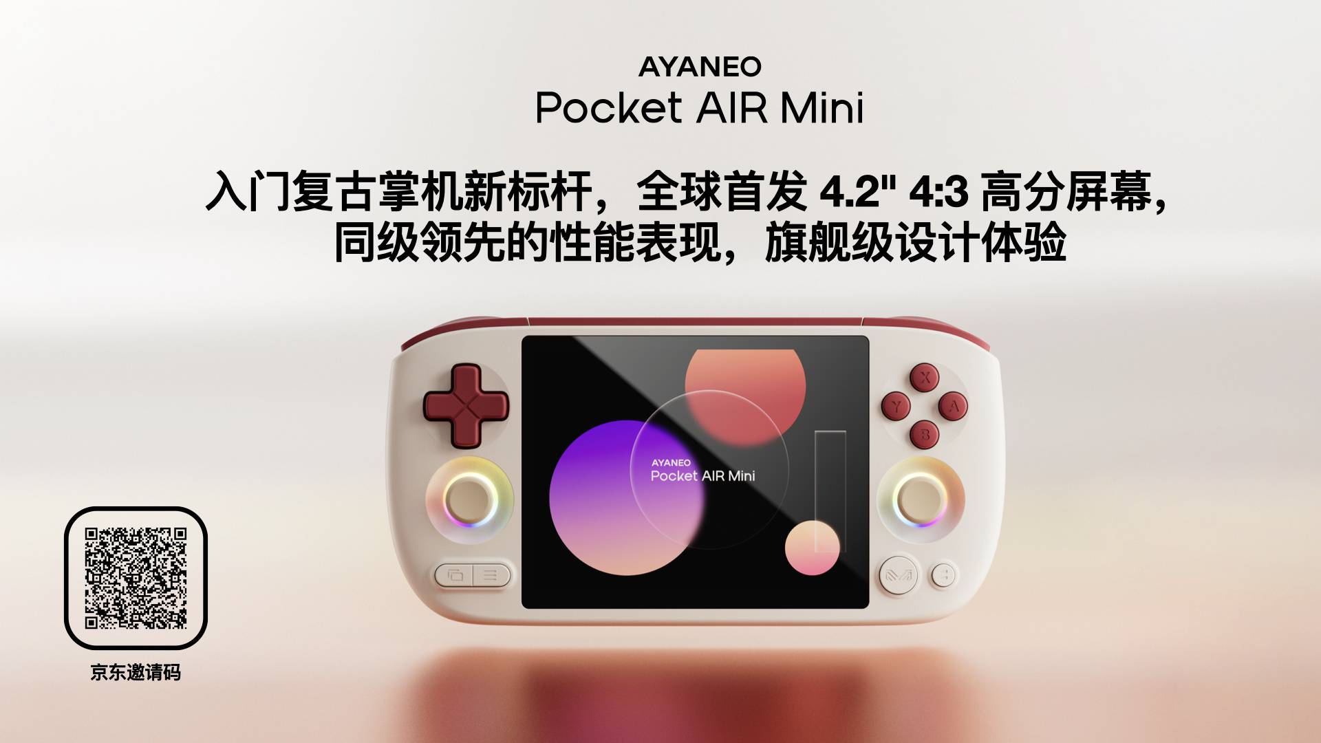「真玩家,懂玩家。」,Pocket AIR Mini 作为 AYANEO 入门级复古掌机杰作,在产品设计、屏幕、性能、操控与软件体验上实现全方位突破,将旗舰基因浓缩于精巧机身之中。它以同级最高颜值、同档最强软件生态、同尺寸最佳屏幕以及同价位大幅领先的性能表现,成就真正人人买得起的复古小掌机。